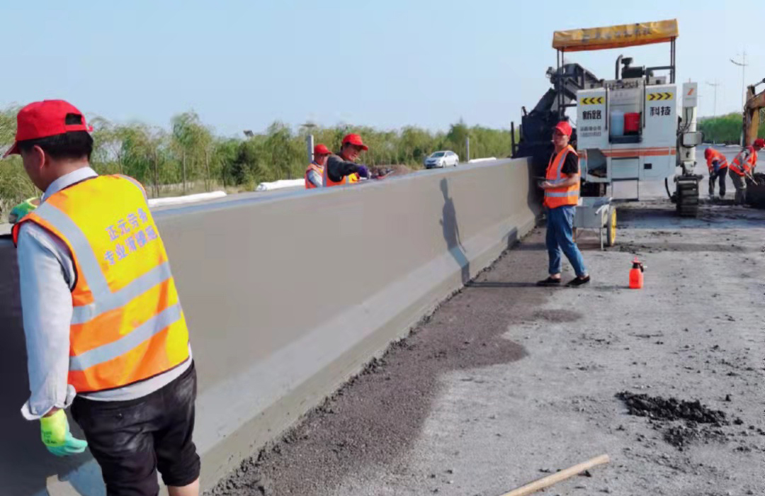 河南漯河橋梁防撞護(hù)欄滑模施工-NC1300滑模攤鋪機(jī)案例
